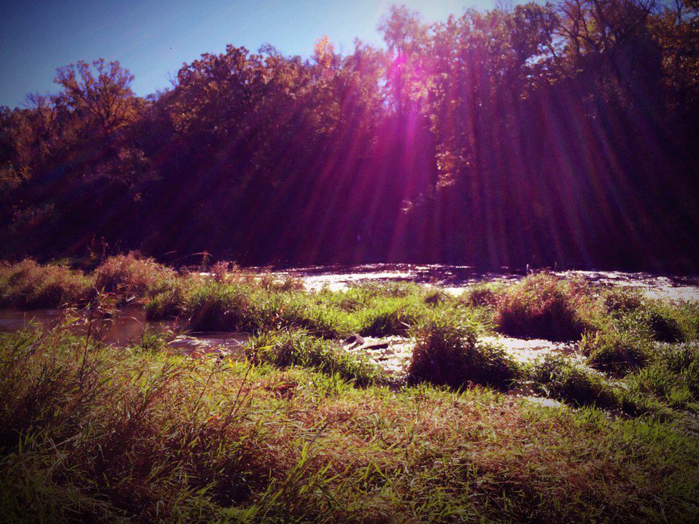 This picture reminds me of how gorgeous nature can be! You can see the river running through with the grass which is still green! When adding the effect on this picture the purple really caught my eye! As it is my favorite color, but it gives the picture an unrealistic quality about it. Although, it is the suns beauty in all of its glory.