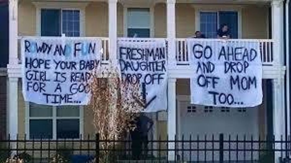 The three banners, reading "Rowdy And Fun! Hope your baby girl is ready for a good time," "Freshman daughter drop off," and "Go ahead and drop mom off too," were on display as new freshmen arrived on campus, but were quickly removed after campus staff were notified. Not only were the banners just plain offensive, the university as a whole is accused of having a "rape culture," a stigma it does not deserve.