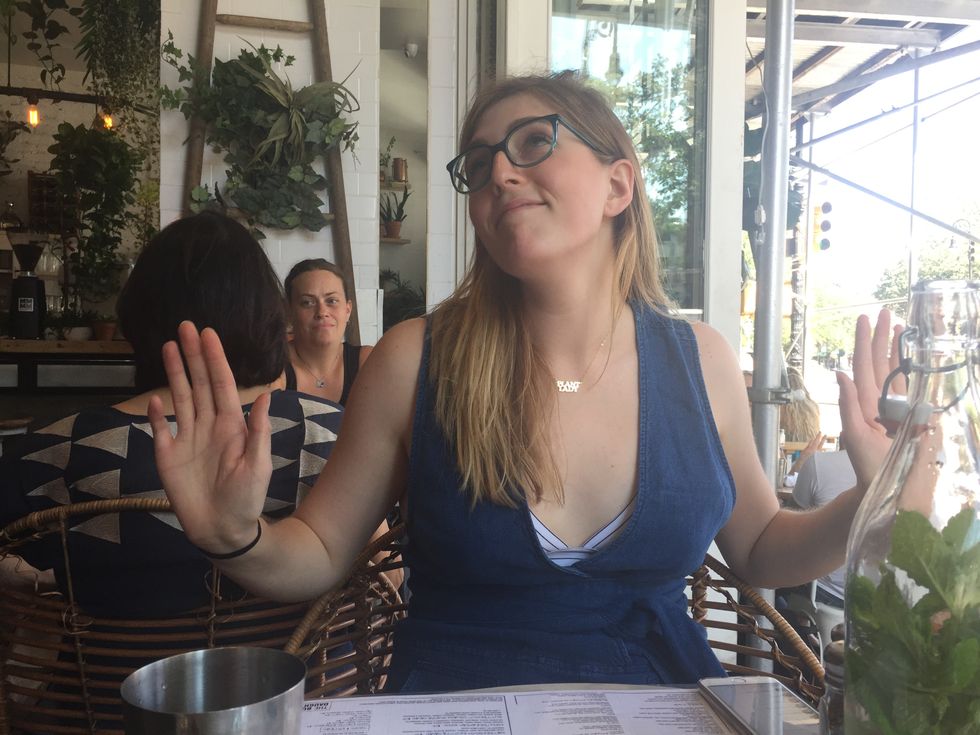 The Butcher's Daughter is a completely vegetarian, and mostly vegan, cafe, juice bar, and restaurant with two locations in Manhattan and one in Venice Beach, CA (plus a food truck, also in LA). The beautiful green atmosphere and airy feel to the restaurant make it a complete joy to be in (seen below, my friend Meghan basking in the ambiance.) So basically, they're doing pretty well. Not only is everything on the menu healthy, but it looks and tastes delicious, too.