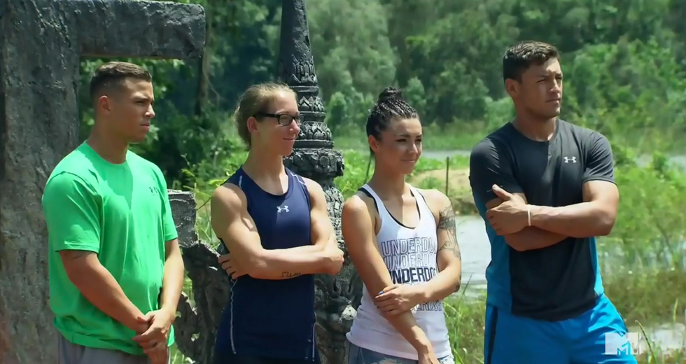 The remaining underdogs were left to divide themselves into teams of two. The teams were as follows: Smashley and Hunter, Anthony and Sylvia, former roommates Jenna and Cory, Bad Blood's Anika and Theo, rivals Amanda and Nelson, and TeaTimeWithToya and Shane, who is still trying to tell these people what Road Rules is. The teams had to get into an unstable boat and navigate themselves around a lake. While the challenge was underway, we got a sneak peek of what the Champions and Ashley Kelsey were up to back in the U.S. CT and Darrel were saying goodbye to their adorable children, and Johnny Bananas was hanging at the beach with his GoPro, which Sarah may or may not have purchased for him.