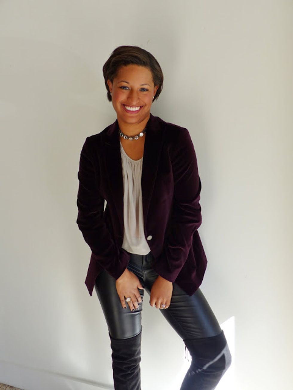 Silk Sleeveless Blouse // Gilda Velvet Blazer // Gianni Bini Leather Pants |
