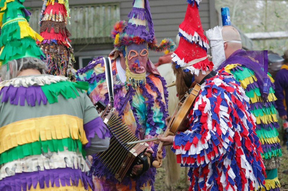 If I had to share anything about mamou Mardi Gras to future participants, I'd tell them that this is not a parade nor a trail ride. Our run is NEVER canceled rain, sleet, snow, or shine, we will run! In Mamou we carry on the tradition. We come fully costumed and masked that morning, we get off our horse at every stop we make, and dance for the residents that donate to us for our gumbo at the end of the run. After dancing, we chase chickens that either the home owners or a captain throws for us. So if anyone plans to come just to ride and not participate, they should probably find a parade or trail ride that other towns/cities offer.