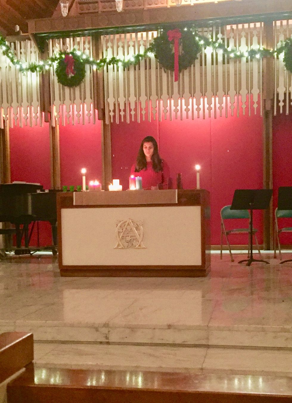 I find that being able to stand up in front of my fellow students, faculty, and professors and read the Word of God proudly is an extremely liberating feeling. As a Catholic, I have wrestled with the fact that I am a Catholic. I have gone back and forth between proclaiming myself devout to almost renouncing my faith all together, yet there seems to always be something that pulls me back. Being surrounded by people who accept my beliefs as their same beliefs helps bring me comfort in the holiday season.