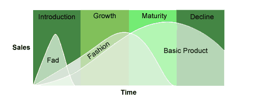 The more features a fashion product includes, the shorter its lifespan. So something like acid washed flared jeans will have much less of a life cycle than a plain black t-shirt. Fashion designers will try to include things with both a short and long life span in their collections, in order to maximize sales before it dies out. The typical fashion cycle lasts about one year, but varies product to product.