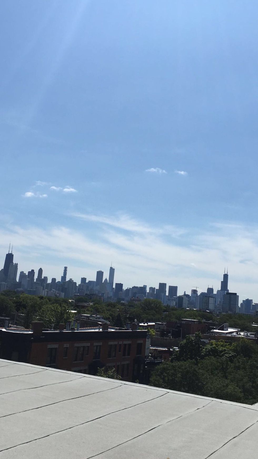 The Clifton Parking Garage and the rooftops of the theater school and some of the dorms on campus has some areas where the entire skyline is shown. These buildings are located on the west side of campus, and all someone would have to do is take a room or go to the south side of the building to capture these stunning photos.