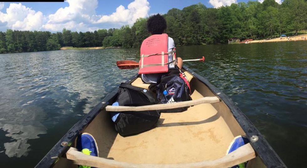 Over the weekend, I had the privilege of going to Hanging Rock State Park in Walnut Cove, N.C. with my friend from school and I had no idea of what I was about to do. There is a lake at the park and we had our minds set on swimming in the lake, but when we got there we decided to try something new! We decided that we were going to go canoeing. Neither one of us had ever done this before, so we were both nervous and were having thoughts like, "Oh gosh, what if we tip over?!" Once we got in the canoe and finally figured out which direction we needed to paddle, it was smooth sailing from there. We canoed for about 30 minutes then we decided it was time to find Hanging Rock.