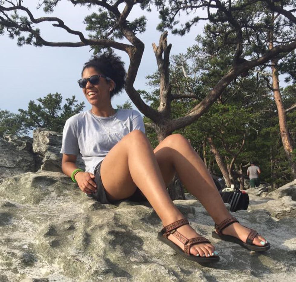 We begin to walk and at first we didn't think it was going to be too bad... until five minutes later when we stopped for our first water break and were already complaining about how tired we were. My friend and I continued to walk on the path, going up and down hills, turning curves, passing through trees and even going up stairs made by rocks that had simply fell into those places. In life there are always going to be obstacles that are going to prevent you from reaching your goal by either distracting you or by making you work harder. When it gets like that, you've got to keep going! We continued to hike up the mountain and when we got about .3 miles away from the top, we took one more quick water break as we saw people walking towards us. We had a feeling we were close so we put our water bottles back into our backpacks and pushed our ways to the top! A couple more turns and steep inclines up some rocks, we finally made it! We walk out of the trees and see the sun shining on us and we feel overwhelmed with a feeling of accomplishment. Being able to say that we climbed 1.3 miles up to the top of Hanging Rock was amazing! Any time you achieve a goal, you will feel so ecstatic once you're done! It was a beautiful sight to be up that high!