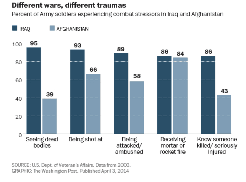 A RAND study found that one in five veterans deployed to Iraq or Afghanistan suffered from PTSD or major depression. These rates are somewhat similar to those reported in other scientific studies.