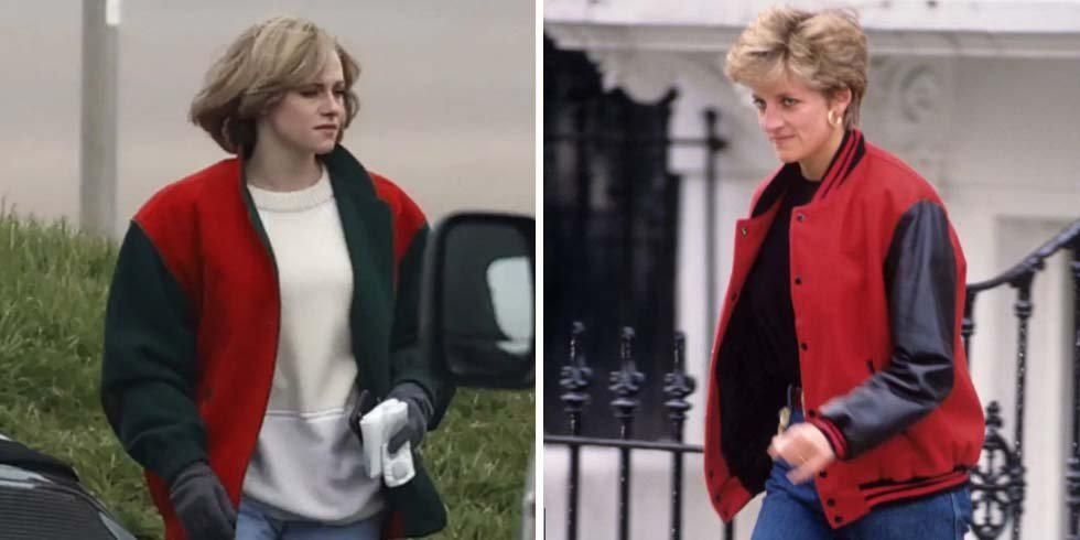 In a scene on the beach, Kristen Stewart confides in Maggie wearing a black and red coat, one of Princess Diana's favorite fashion items in 1993.