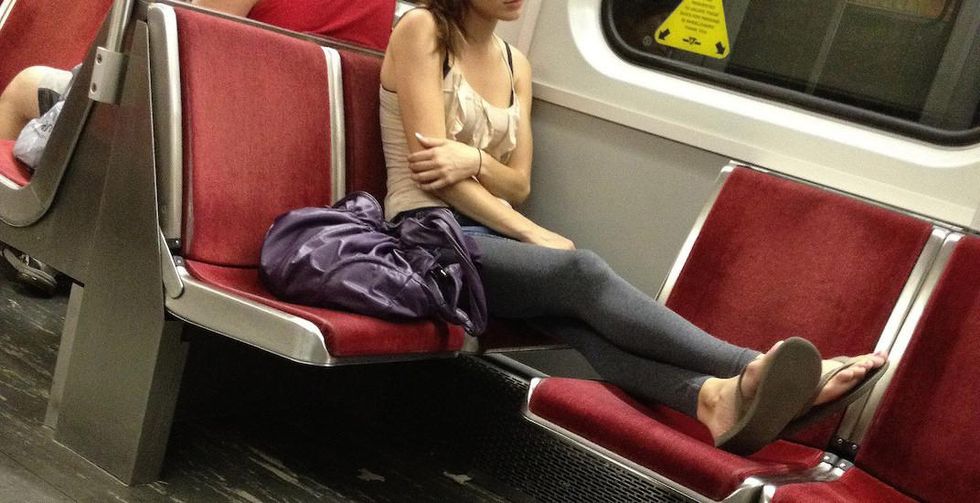 Don't take up two seats on the train or bus