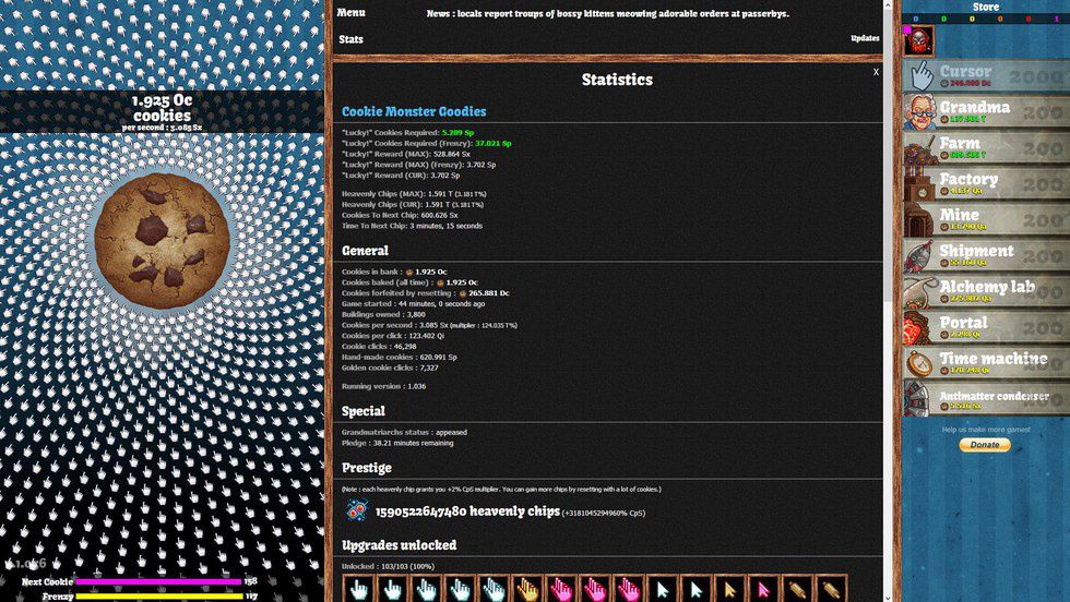 Instead of just working on something for three hours straight, I would work for thirty minutes, check on my cookies and do whatever I could there, and then I would move on to the next thing I wanted to do. This continued until I eventually dropped the game because it just didn't interest me anymore. Or maybe I had gathered up all the achievements that were physically possible. There are some that require you to hack the game to get, and I didn't ever feel like attempting to break the game.