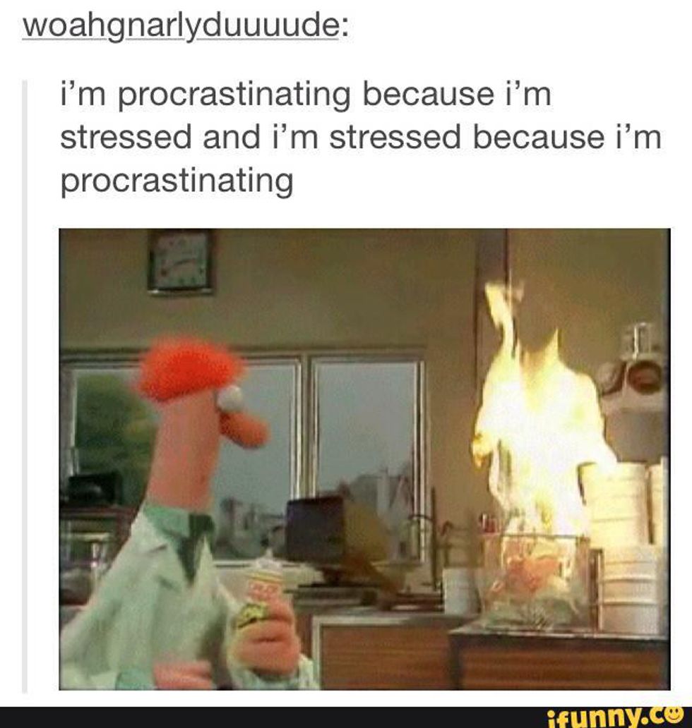 Real life: I'm a terrible, awful procrastinator. No matter how many assignments you fight through or deadlines you push, you still find yourself in that constant cycle of procrastination. The tough reality is that procrastination is no longer something you just do, it's your way of life.