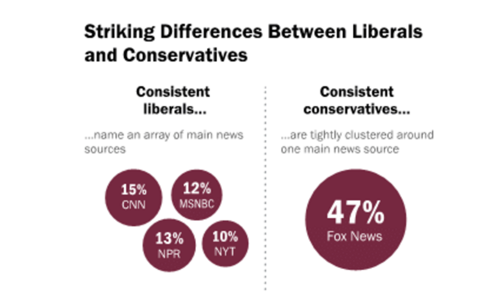 This data states the sources that liberals and conservatives consistently get their news from.