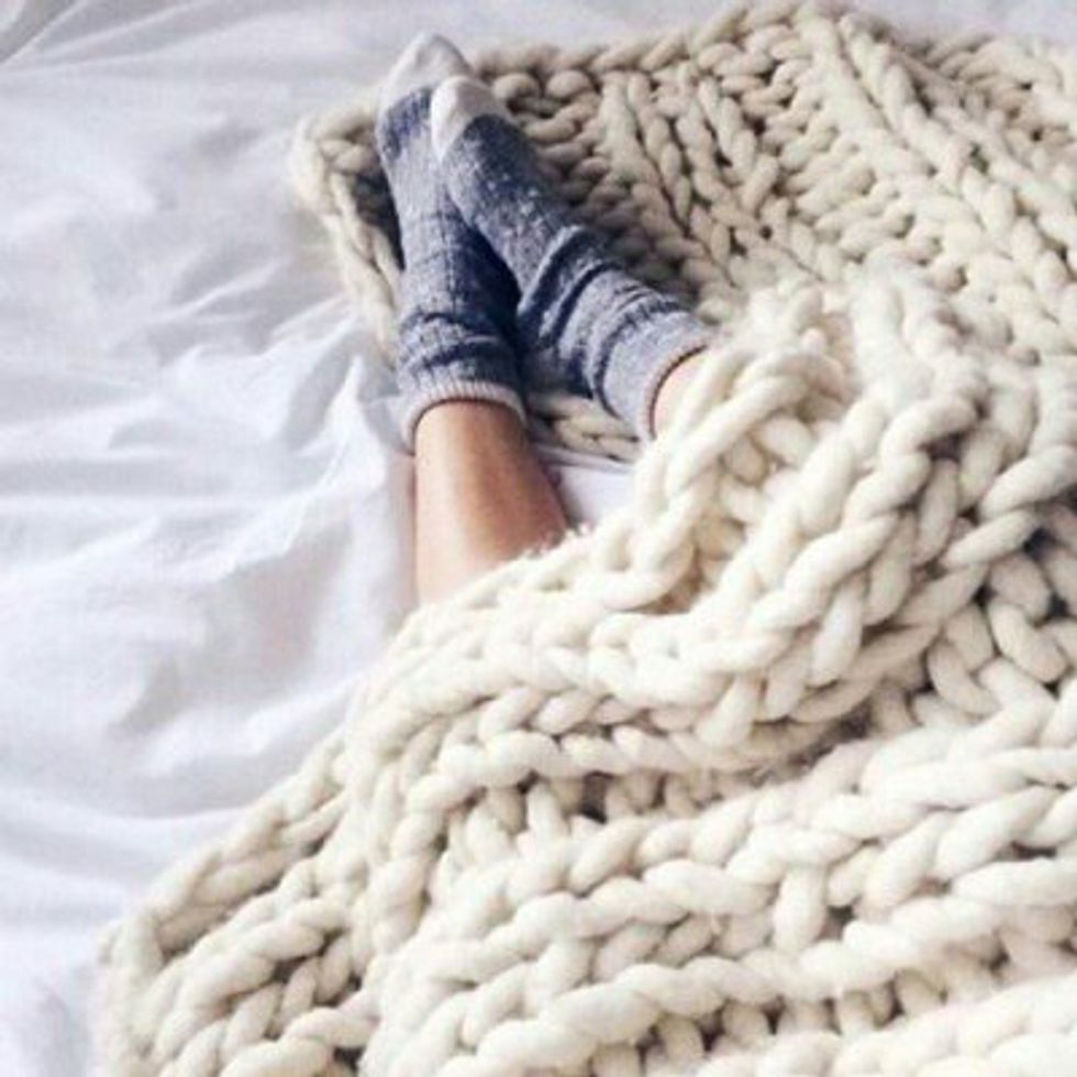 Oversized sweaters, chunky knit blankets with cozy socks and fluffy pillows. Relax in comfort and style.