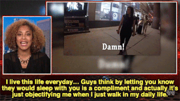 Sexual Assault and Rape: No one should have to live in fear because of what they are wearing, how much they have had to drink, where they are, who they walk past, etc. We should be teaching our children NOT to rape instead of telling them to carry mace, a rape whistle, shaming them for how they dress and how to act when they go out.Check out the It's On Us campaign to see videos about what we can do to prevent sexual assault and rape.Cat Calling: It's not cute or flattering, it's objectifying.