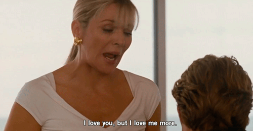 It can be argued that Samantha Jones doesn't believe in the idea of falling in love; she boasts on her pride and sexual liberation, seeing her partners as "in and out, one and done" prospects that fulfill her innate sexual desires. While the other women circumscribe their lives around love, the good and bad, Jones focuses solely on lust-based sex. She despises the idea of marriage and the thought of confining herself to one man. She views intimacy and developing relationships as threatening and avoids exposing herself emotionally at all costs. The one concept of love Jones truly believes in is self-love; out of all the women, Jones is by far the most confident and least afraid to show off her libertine, raunchy, and lewd antics and beliefs. At the end of the series, Jones allows herself to fall in love with Hollywood actor, Smith Jared, but ends up reverting back to her old ways in the first "Sex and the City" movie when she declares that she'll always love herself more than a man. This essentially is a testament to everything she stands for.