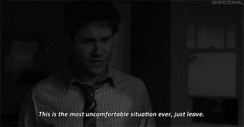 The nerve of some people. I feel like this is the most obvious while also the biggest no, no. You can see that the chair in front of me is specifically for my feet. You have plentiful other options - so help me god if you sit down right in front of me.