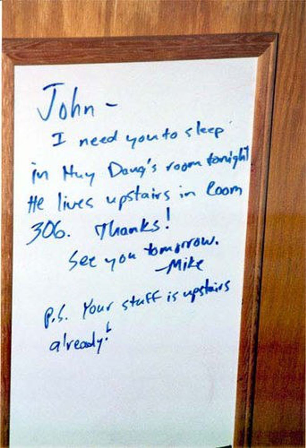 You should always give fair warning if you plan on evicting your accommodating roommate. It’s only fair that the poor thing gets at least a chance to make away with a few choicest possessions, like a refugee from the impending storm of college hook-up.