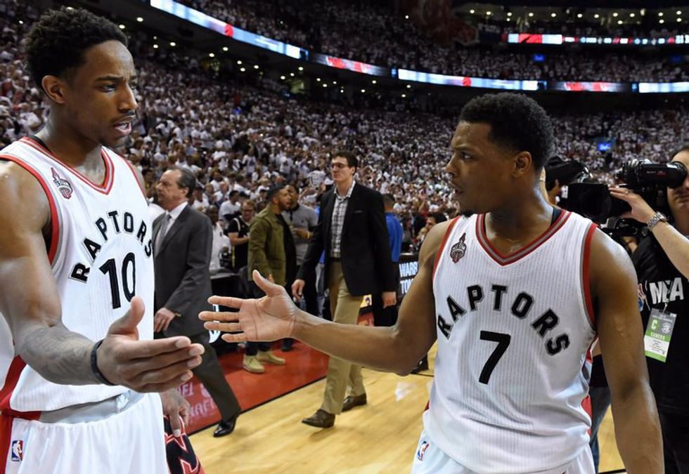Another very exciting Eastern Conference backcourt combination is north of the border in Toronto, Ontario, Canada. This tandem plays at Air Canada Center and their team is the Toronto Raptors. The Raptors have quite the backcourt that can put up points in a hurry. I'm talking about their PG Kyle Lowry and their SG. DeMar DeRozan. I saw how good of a backcourt these two are for myself when I saw the Raptors at Air Canada Center on March 2nd, 2016. The Raptors won 104-94, but Lowry and DeRozan made the game feel like it wasn't as close as the score indicates. Kyle Lowry and DeMar DeRozan combined for a staggering 63 points, with DeRozan scoring 31 and Lowry with 32. The Raptors team and crowd feeds on their all star backcourt's energy and just thrives. During the 2015-16 Season, Lowry averaged 21.2 Points Per Game, 6.4 Assists Per Game, and 4.7 Rebounds Per Game. While DeRozan averaged 23.5 Points Per Game, 4.0 Assists Per Game, and 4.5 Rebounds Per Game during 2015-16 SeasonThey made it all the way to the eastern conference finals, but they ran into a buzz saw known as LeBron James and the Cavaliers. But don't be surprised if the Raptors get back there as a result of this AMAZING backcourt.