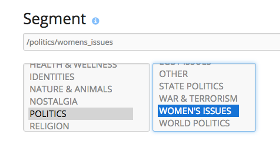 This pro-woman, pro-feminist bias is everywhere. To give an example, look no further than Odyssey. When categorizing an article, in the segment, "Politics," there is a subsegment, "Women's Issues," but no such category exists for men: