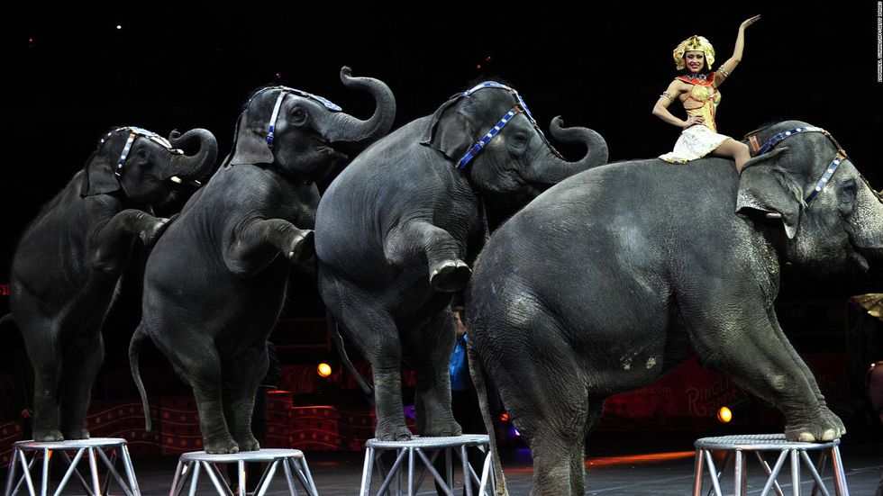 Despite reading about the cruel treatment these animals receive, I understand why millions of people have seen the Ringling Bros. and Barnum & Bailey Circus since it debuted in 1919. It's a sight to behold when you see elephants and lions stand on their back legs, just like it's jaw-dropping when you see a lion jump over three other lions, but do you know how horrendous and inhumane it is to have animals do these tricks and put on these performances? Did you know that elephants can spend 100 hours in a cage while traveling from one show to another? Did you know baby elephants are taken from their mothers at 21 months, despite the fact that wild female elephants stay with one another their entire lives? Did you know that circus animals are beaten even for the slightest act of disobedience, and that they are trained to fear their trainers? Animals aren't meant to be circus performers, just like elephants shouldn't be ridden on let alone stand on their two back legs (PETA).