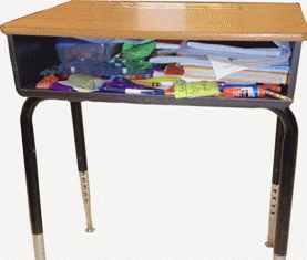 By the end of the year, you've accumulated so much crap that your desk is essentially bursting at the seams. You find scented erasers, a library book, a note from your best friend, and that report that you lost a few weeks ago. Most of it ends up in the trash, but you decide to save your Lisa Frank folder for next year.