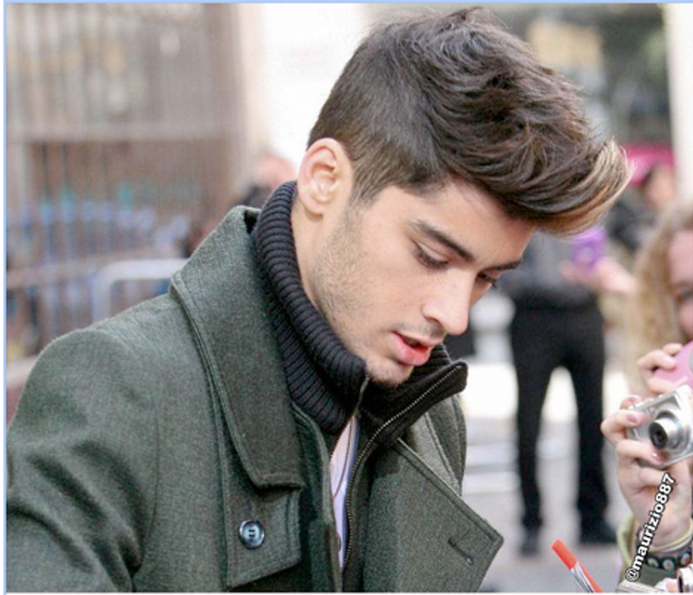 Long and coiffed at the top, fading to nearly buzzed at the sides. (Former) One Direction star Zayn Malik looks gentlemanly but cool as he signs autographs in 2013.