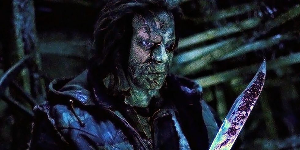 Michael Myers fakes his own death yet again! In this film he manages to kill his sister. In this film he has the white mask with the addition of noticeable makeup. He is electrocuted in the end of the film and presumed dead. Is he dead for real? Who knows but it does not matter as the films were rebooted.