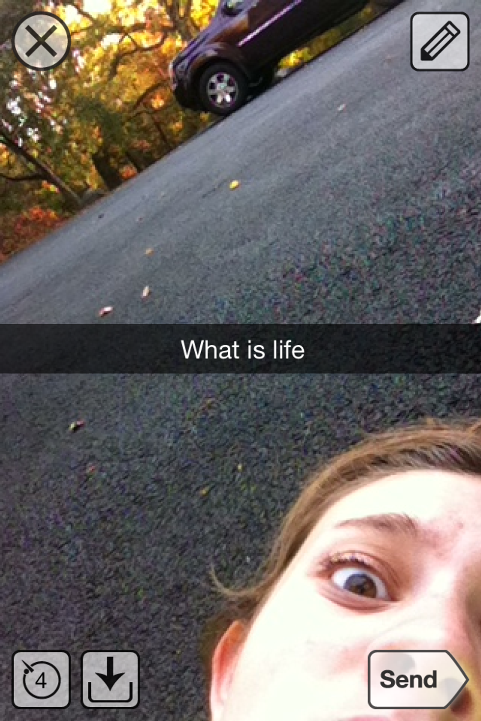 This was before I knew how to save snaps. Yes, that is a very rudimentary skill, but that's a me problem. I'm also not quite sure why I thought this one was worth saving, but remember this interface?! It looks ancient. The large SEND button from the Dark Ages. This was also a time long before the MyStory feature--where Snap was simply sending pictures.