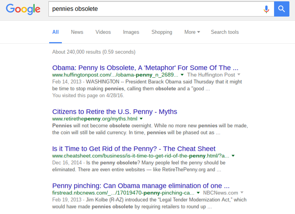 Perhaps I'm being petty. I've ranted to friends before about pennies only to find out that no one felt as strongly as I did about them. And I guess I understand - with credit cards and online transactions replacing physical currency, pennies might become some nostalgic relic that remind us of a simpler time, where the newspaper cost only five cents and Joe's Hardware Supplies was just around the corner. But really I don't understand, because the penny should be obsolete and it seems unknown interests are keeping it alive.