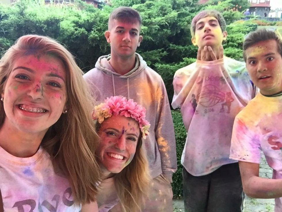 The color throw is just as incredible to witness as it is to partake in. Every half an hour (at least at the color throw at The Palace) everyone congregates and tosses their powder as high as they can all together as a crowd. The air is filled with flying colors, the ground is no longer recognizable and instead a tie-dyed beautiful mess, everyone and everything is coated in layers of the powder.