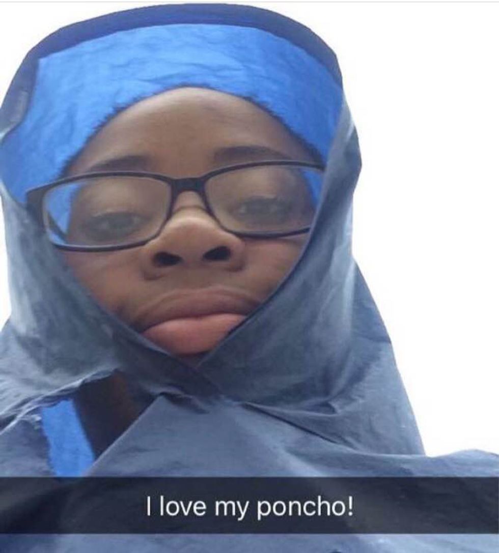 Are you still confused as to why or what purpose this serves? Let's talk to some fellow people who have "finstas." I asked a few good friends of mine why they enjoyed their "finsta" accounts and they gave some great responses. My friend MJ told me, "My finsta is funny because I can be who I really am without anyone judging me because I have people that I trust follow me and I follow them. It's like my social media journal." She even included this wonderful photo from her finsta so we can see exactly what kind of quality pictures she posts on her account. This is one of her most iconic pictures of her and her handy-dandy poncho that she adores!