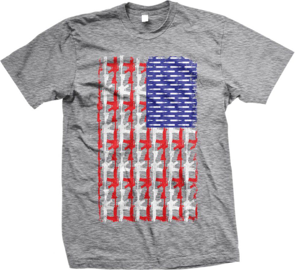 While guns may have been viewed as little more than tools in the early history of the United States, they have become part of the American national mythology. We love our guns. We proudly flaunt our right to bear arms granted to us by the Second Amendment to the Constitution. And here is a cool T-shirt that you can buy to show it!