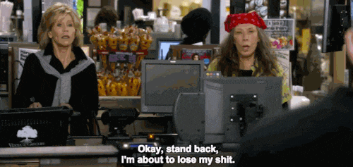 So this week I started my first day of classes at Curtin University in Perth, Australia. The social aspect of starting at a new school is daunting, even back home in the States, so imagine that feeling in an unfamiliar country. I don't know what's socially acceptable yet. I don't know how classes function. I don't know any of the buildings or the professors. I walked past the same group of people down the same hallway for ten minutes before I finally found my classroom on the first day of creative writing. The end of the week had me feeling totally exasperated. All I wanted to do was sit down with a bottle of chardonnay and binge watch some comedy television. Luckily, I have Jane Fonda and Lily Tomlin from Grace and Frankie to help me illustrate a little better for you all what my first day at Australian university felt like.