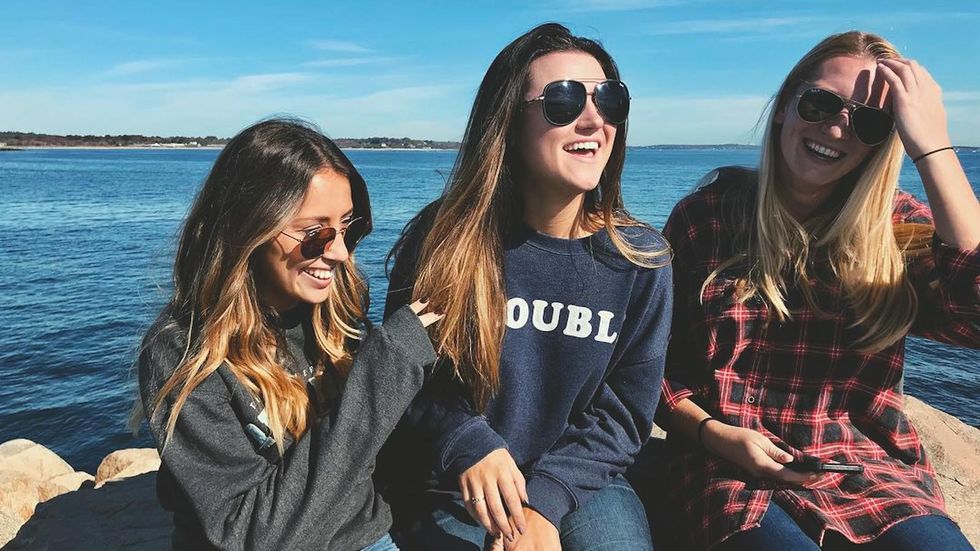 Guys and girls in overpriced Patagonia pullovers paired with either LuLu leggings or khakis and L.L. Bean boots can be spotted on your rushed walk up the hill to class. It's too early to wear Uggs, but I don't hate on the girls who already started, because while my feet freeze in my converse theirs are nice and toasty. While the friendly neighborhood squirrels dart in front of our cars, people are seen driving from campus with their windows slightly down, trying to take in the last fresh blasts of air left before it gets too cold. Let us not forget the flux of artsy pictures on Instagram and the best part of fall... Big/Little reveal for sorority girls!