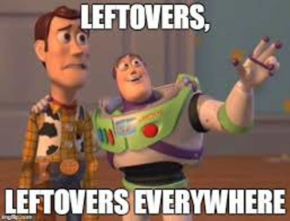 You get home from 10 straight hours of shopping and you need some sustenance. And the only food in the house is- you guessed it. Only this time around, you have to settle for the dark meat of the turkey even though you like white meat, there's no potatoes left, and the vegetables are all kind of mixed together. It was good while it lasted though, right?
