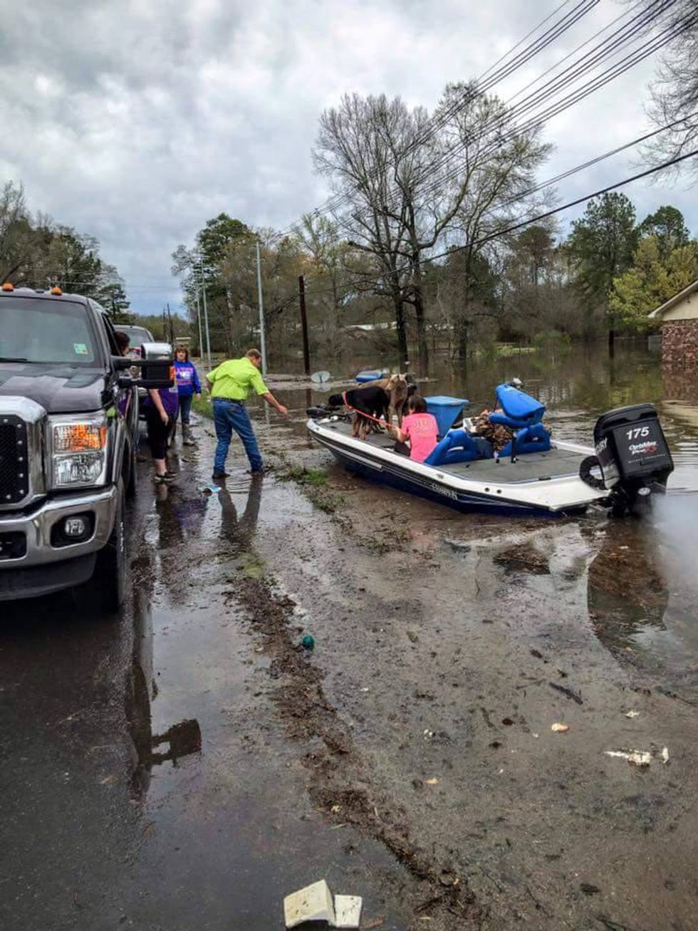 This picture, taken by Jennifer Beal Clark, shows Ashley Solet rescuing her dogs from her flooded home on Cole Road.
