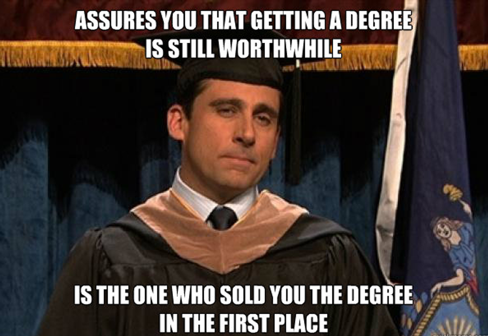 18 years of schooling just ends, and like a bird leaving the nest for the first time, I’m not sure where the rest of the world will take me, and that’s terrifying. I need to know what happens next in the chapters of life. Can the blueprint just keep going? Like can I just go to "16th grade," and then "17th grade," and then just keep going until the good Lord takes me? I mean yeah I guess if you're looking into grad school... But I just need to know now what my life looks like a year from now. After I cross that stage in my scholarly regalia and grab that piece of expensive paper, and turn my tassel, it’s a whole new world for me.