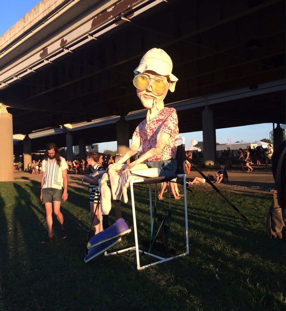 Perhaps more interesting than Thompson’s life and death is his hitherto endless afterlife. The ghost of Hunter S. Thompson lurks in every alleyway in the Highlands neighborhood of Louisville. Prints of him are for sale in local shops, gonzo-style Ralph Steadman-esque art decorates buildings, a large puppet of him always wanders around the annual Forecastle Music Festival (which also features a Gonzo Bar), and every year in April Thompson’s life and work are celebrated in the two-day long Gonzo Fest. He even has a beer. In short, Hunter S. Thompson’s presence is ubiquitous in this city, despite the fact that he died over ten years ago and previously had not lived there permanently for decades.