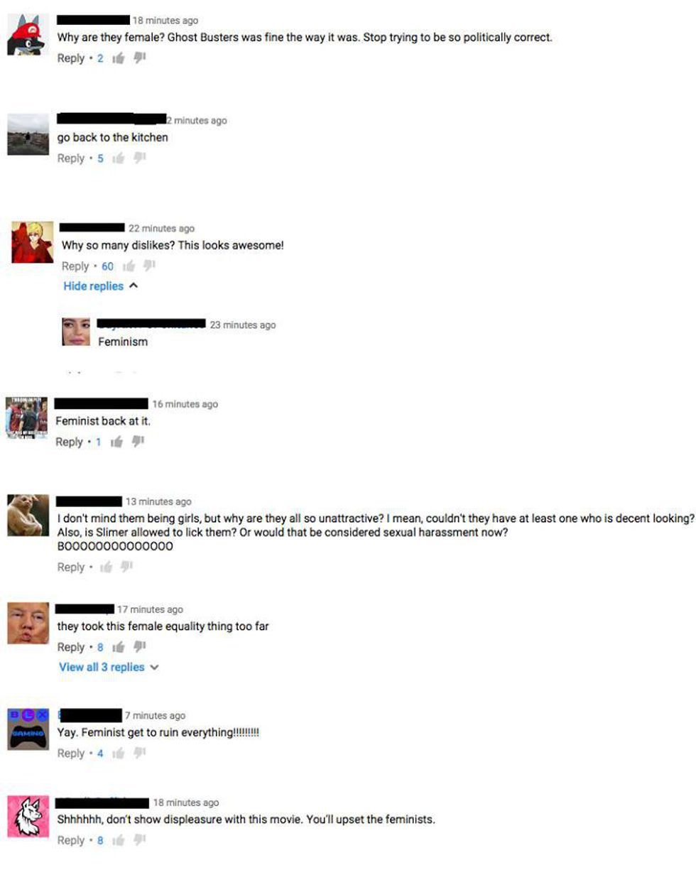 If these people were digging any deeper for reasons why they didn't like this film (which they haven't even seen yet), I wouldn't have a problem. I have seen rants about why this film is doing the "Ghostbusters" name a disservice that had nothing to do with the female characters that I almost totally agree with. Everyone is obviously entitled to their opinion, and some just don't like this reboot for a multitude of well thought out reasons.