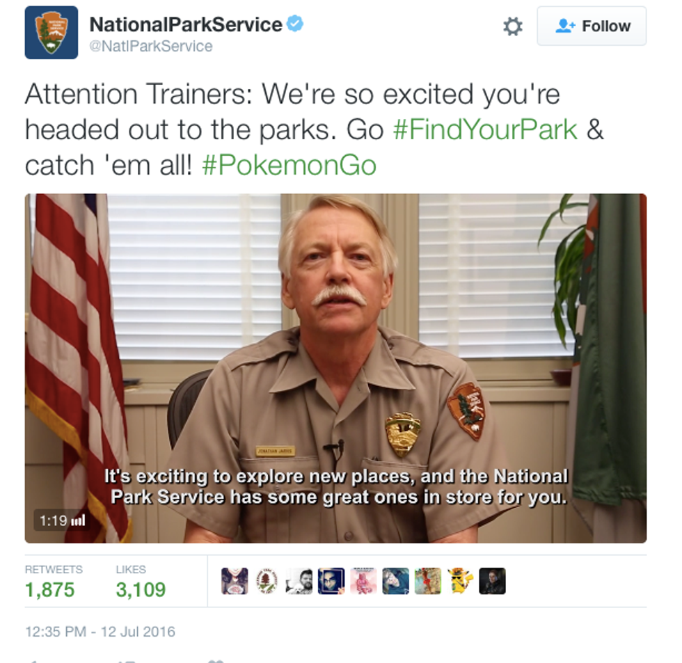 People seem to be going to new places! The National Park Service actually issued a PSA about what Pokémon players can expect at the park. This is almost unprecedented for a gaming app. As much as I loved Angry Birds back in the day, it never made me want to go out and explore.