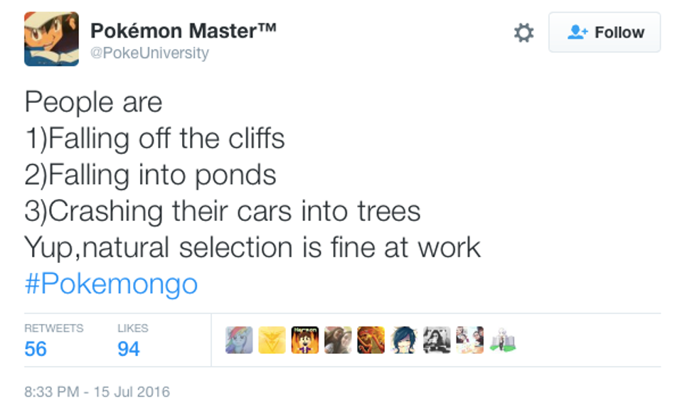 Bad: It’s as if people weren’t distracted enough. I get that you want to take pictures of a random cartoon character, but y'all... Doing scary things, like walking alone at night, might make for a fun story, but please be safe! I don’t think any game is worth your life. Whatever you do, please do not Pokémon Go and drive. I probably sound like your mom, but you'll thank me later when you're alive.