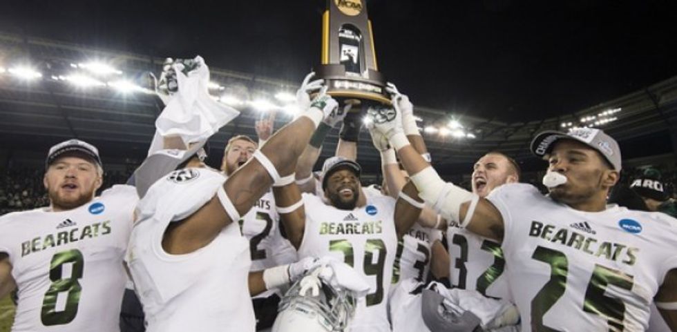 Thankfully, Northwest Missouri State has a pretty kickass football team. National Champions not to brag or anything. The atmosphere at home football games is amazing! People are surrounding the field to watch the game and cheer on the Bearcats. It is something you do not want to miss. Rain or shine it's a great time to watch your college football team put in some work.
