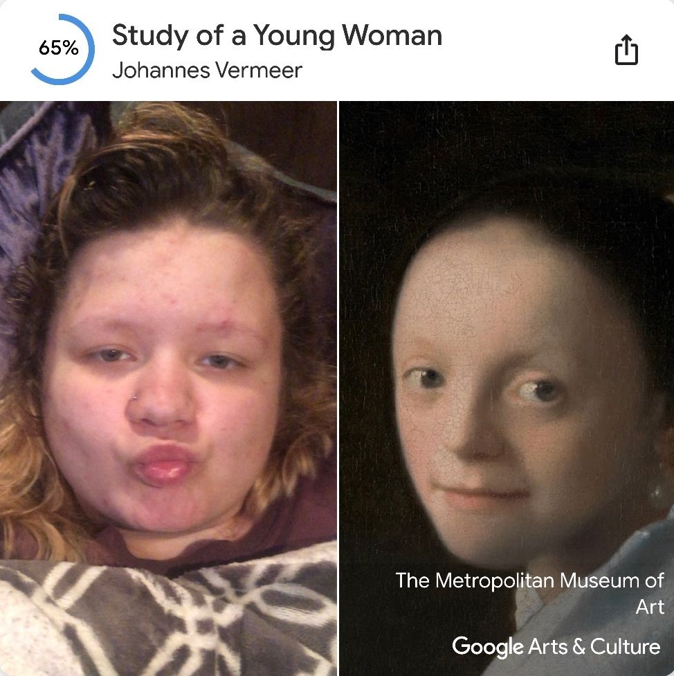So recently I discovered this app called Art and Culture by Google. You can do all whole bunch of stuff with it and learn a lot about, well, art and culture. However... there is an option to compare your selfie to a famous piece of art work. Let's just say it's either spot on and scary accurate or completely wrong and degrading. Mine is degrading; it completely tore my self esteem down. Here are some results that my community and I got. Enjoy.