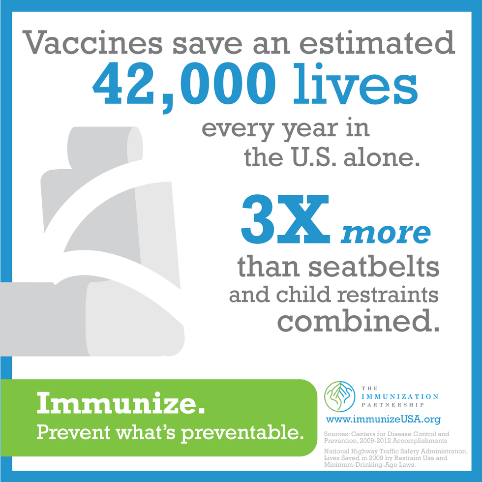 "During the past 50 years, immunization has saved more than a billion lives and prevented countless illnesses and disabilities in the United States." (www.immunize.org)