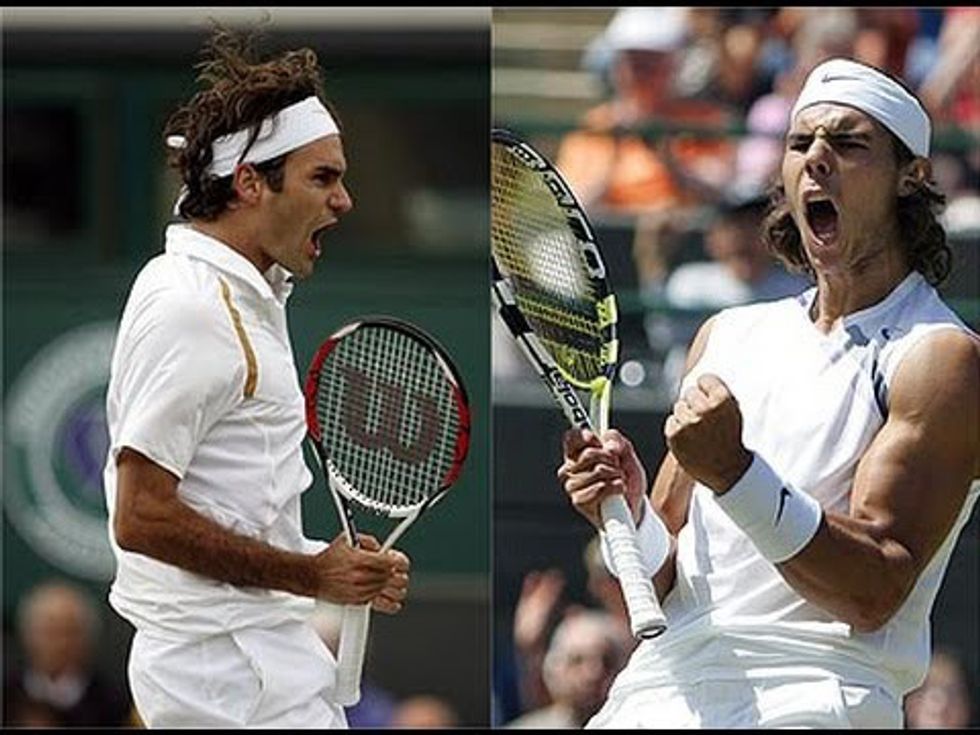 It was the high point of what many consider to be the greatest rivalry tennis has ever seen: Swiss player Roger Federer vs. Spanish player Rafael Nadal -- two titans who had won the previous 14 of 16 Grand Slam titles, now contending the 2008 Wimbledon title. Federer, 26, had been undefeated at the tournament since 2003, winning an unprecedented five consecutive Wimbledon titles in the process. Twenty-year-old Nadal, however, had pushed Federer to the brink in the 2007 Wimbledon final, but came up just short in a tight five set match. Nadal also had an 11-6 advantage in their head to head count, and had made the 2006 final, as well. Could this be the year that Nadal finally toppled Federer at Wimbledon?