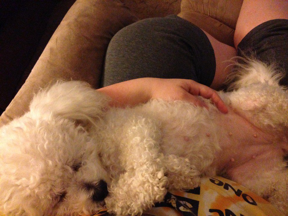 Our pets definitely know when we had rough day. They can instantly see that we are upset. This is actually a picture of one of my dogs. Our pets always know what to do, whether it be giving you a kiss or having cuddle sessions.