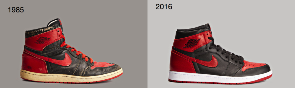 Originally sold for $20 in 1985, the Air Jordan 1 continues to release different colorways every year, with an increased retail price of $160. With a Nike Flyknit version and an Off-White collaboration slated for a near release, it's interesting to see where the silhouette will take us next.
