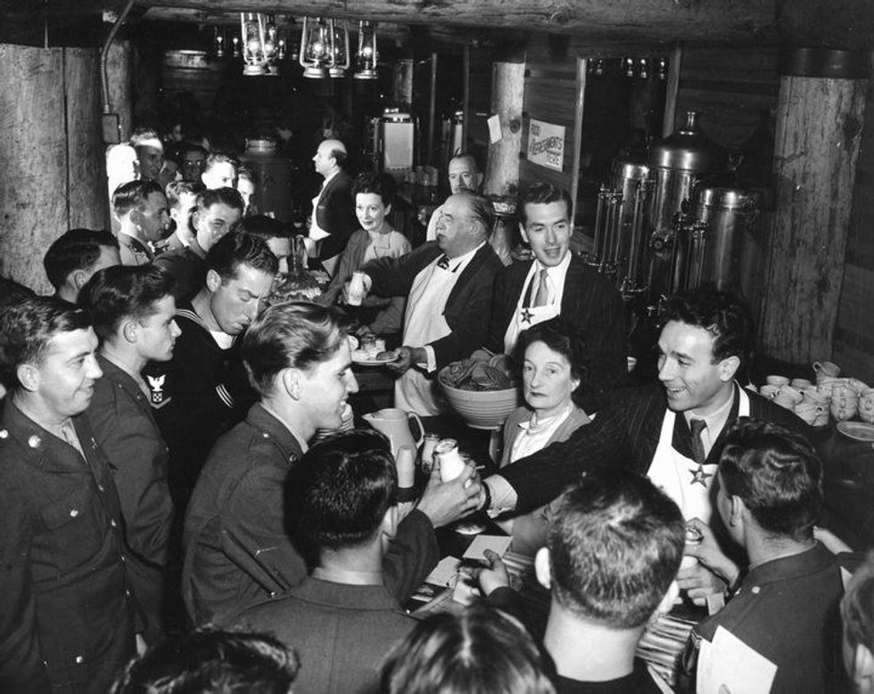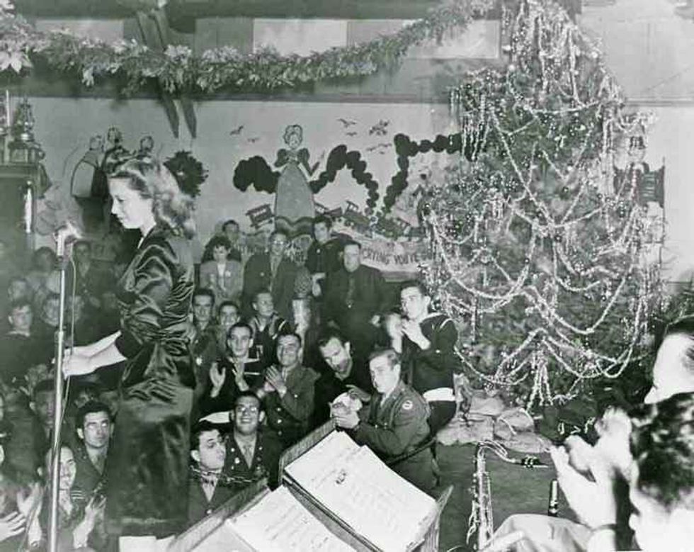 Holidays played no exception at the Canteen: Turkey dinners were served to celebrate Thanksgiving and Christmas was abound with decorations, feasts, and - even at a time of such unrest - joy. Since those in uniform were often displaced during holidays, this meant that the Hollywood performers who volunteered at various times would often volunteer to give each man and woman in uniform an amazing day or night to celebrate.