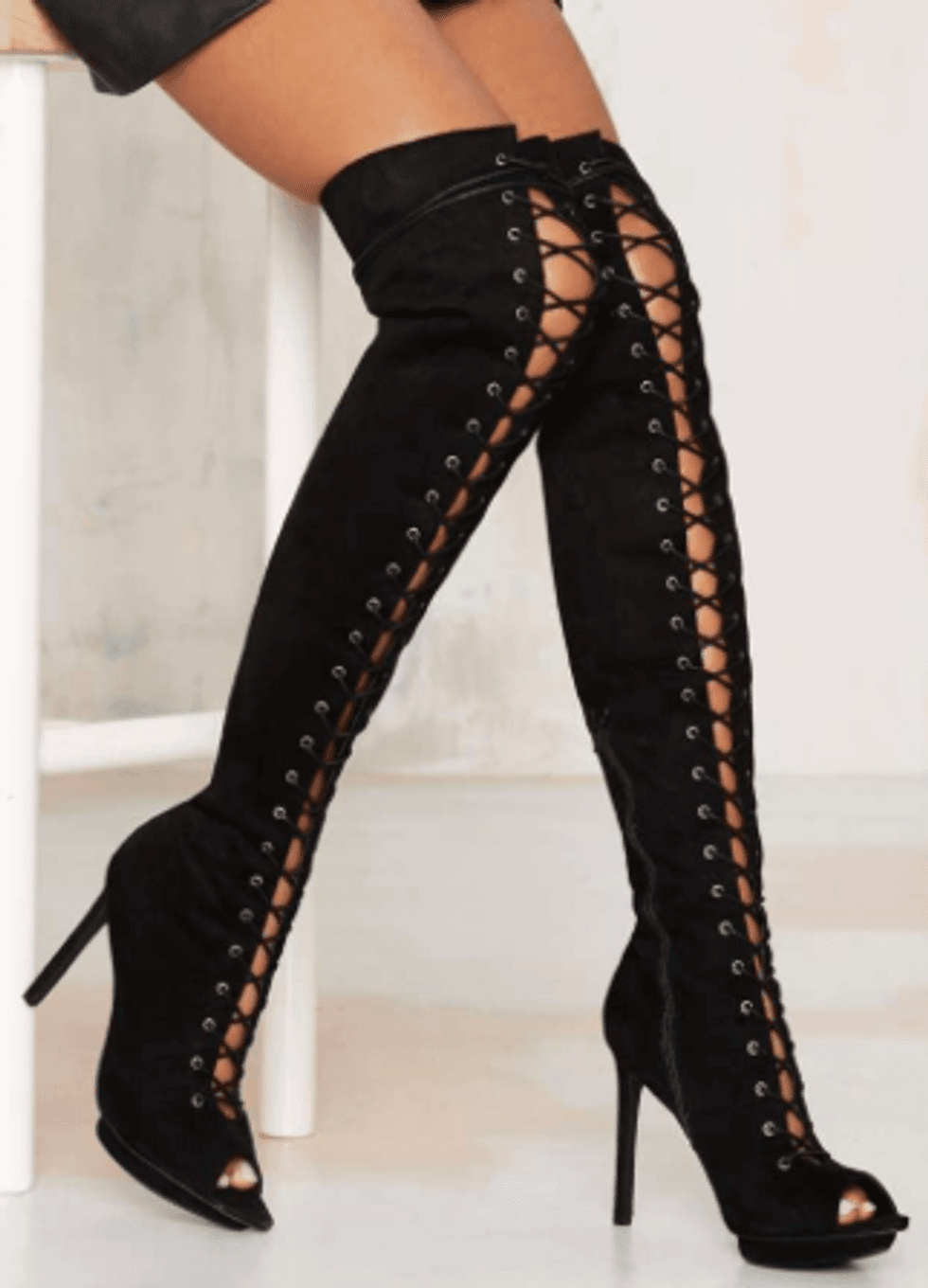 Pictured Above: Nasty Gal Clarissa Over-The-Knee Lace-Up Boot